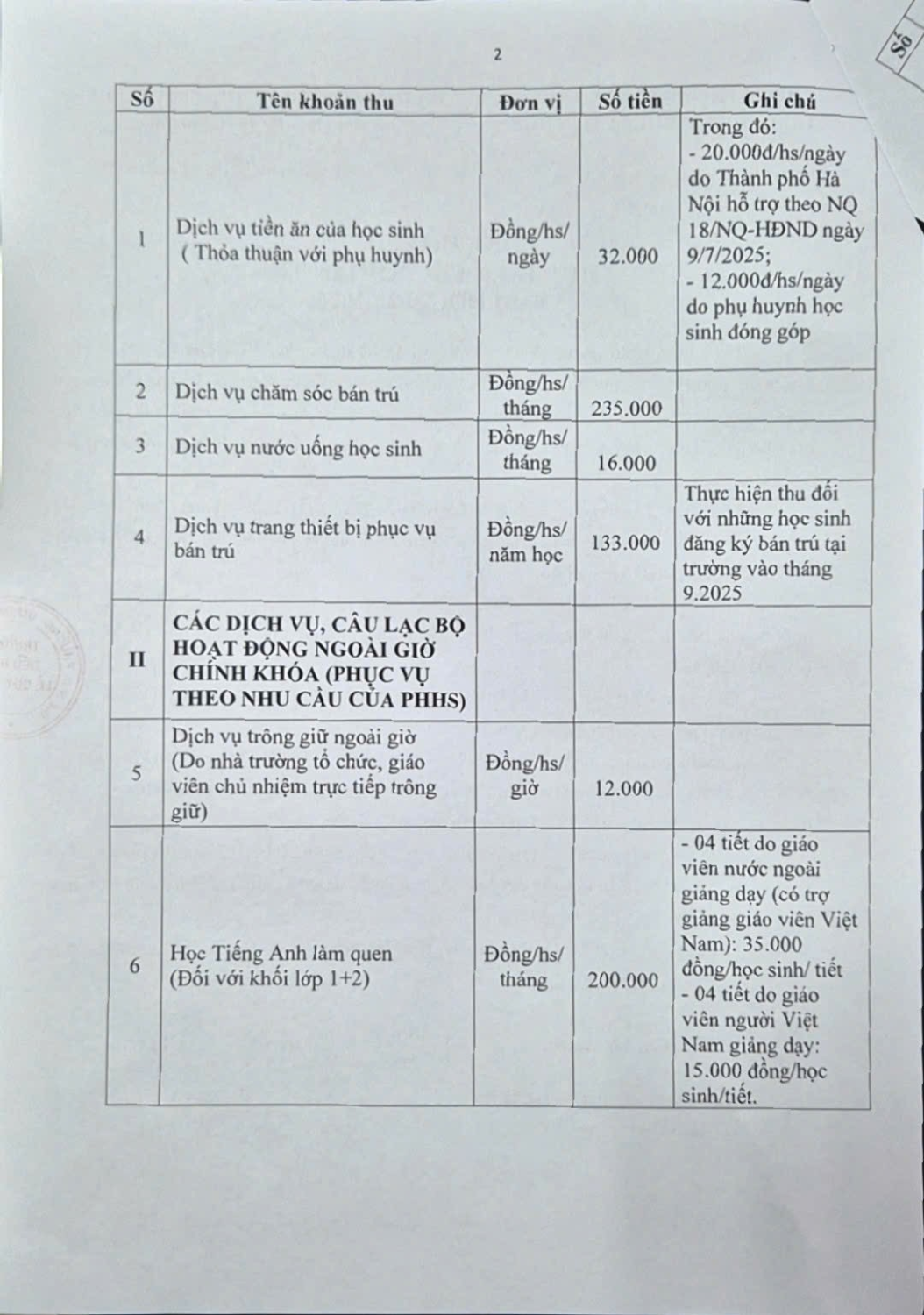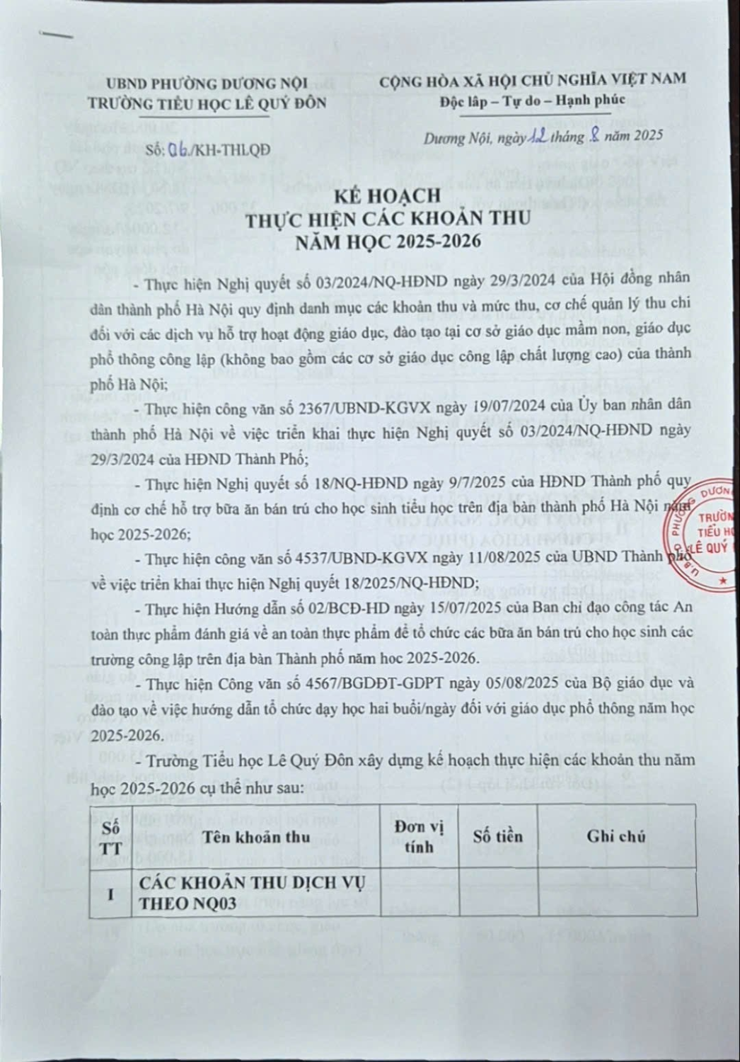 THỰC HIỆN CÁC KHOẢN THU NĂM HỌC 2025-2026