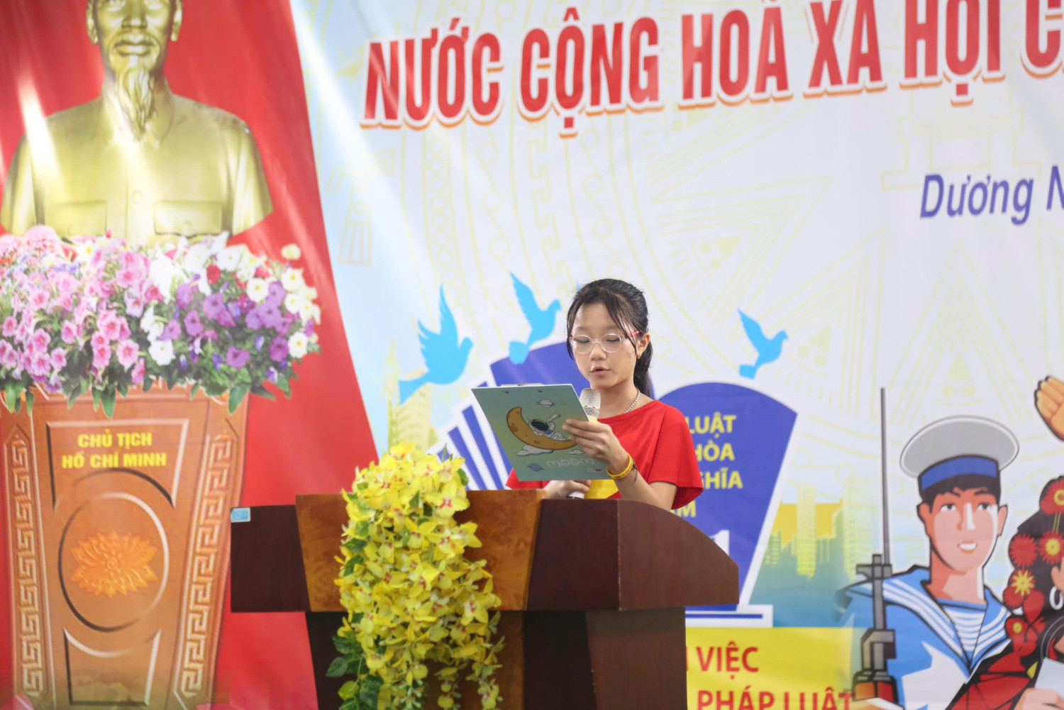 Đại diện học sinh, em Lê Anh Thư – lớp 4A8 đã bày tỏ những suy nghĩ, lời hứa quyết tâm học tập và rèn luyện để trở thành những công dân nhỏ tuổi sống, học tập và làm việc theo pháp luật.