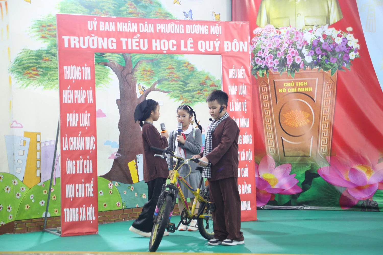 Phần tiểu phẩm “Chuyện của Mai” với chủ đề “An toàn giao thông khi ngồi trên xe máy” do học sinh khối 4 thể hiện đã mang lại nhiều bài học thiết thực, giúp các em hiểu rõ hơn về trách nhiệm và ý thức khi tham gia giao thông.