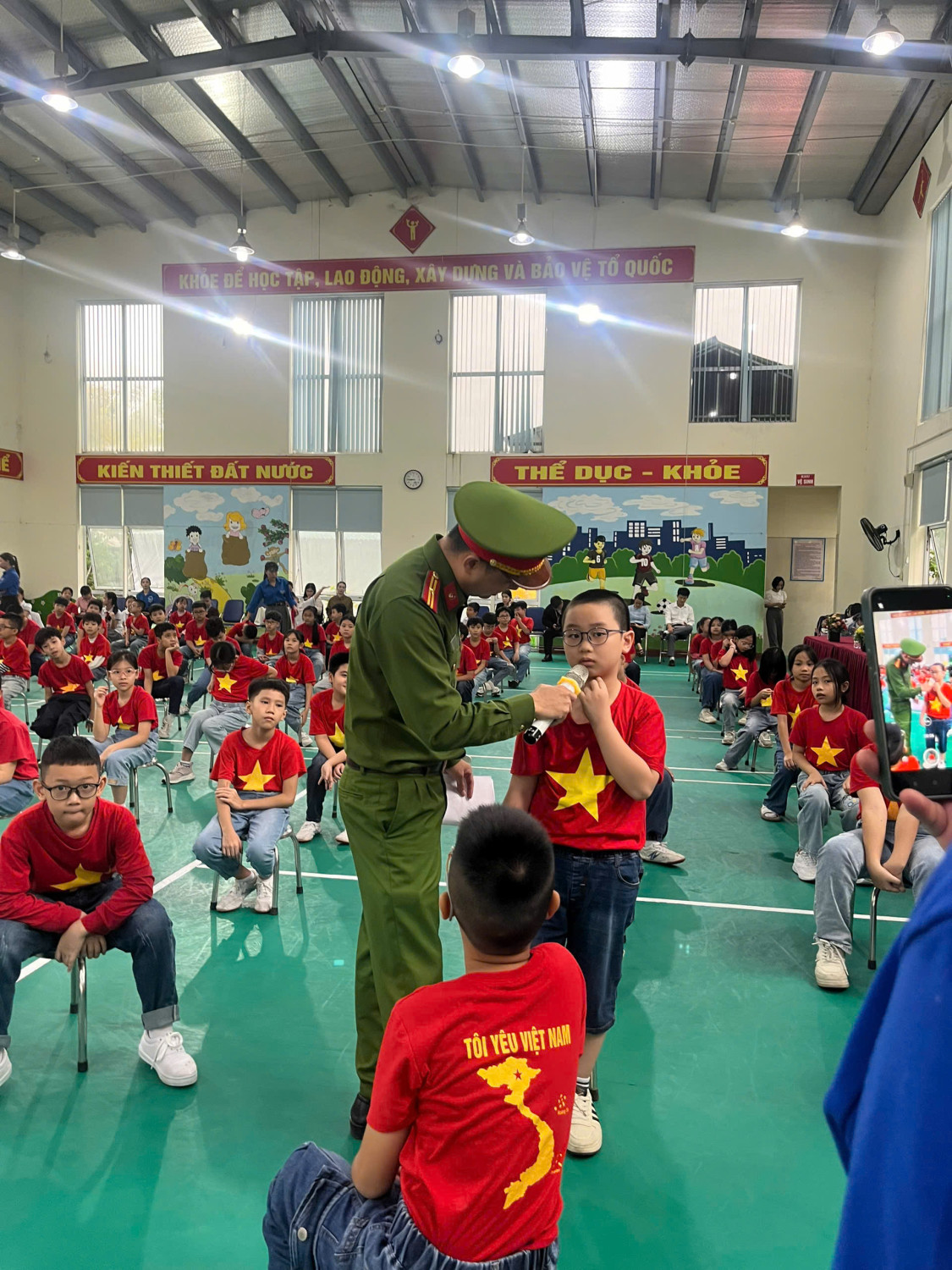 Đặc biệt, các em học sinh còn được giao lưu, tuyên truyền và chia sẻ những kiến thức bổ ích cùng Thiếu tá Đặng Quốc Hùng – Công an phường Dương Nội, giúp các em nắm vững hơn về pháp luật học đường và kỹ năng sống an toàn.