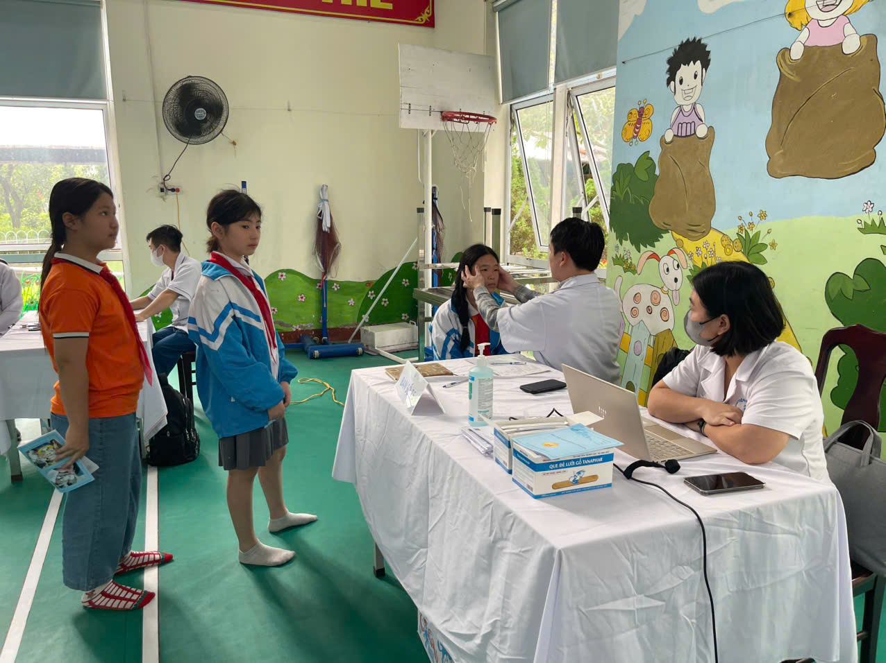 Buổi khám diễn ra nghiêm túc, khoa học, đảm bảo an toàn và tạo không khí thân thiện để các em nhỏ cảm thấy thoải mái khi được kiểm tra sức khỏe.