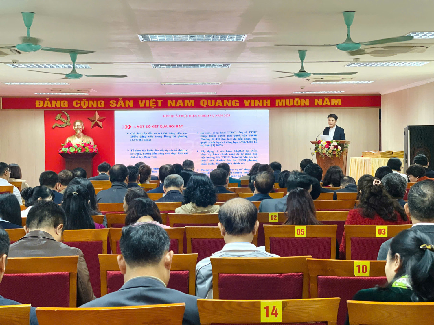Đến dự hội nghị có các đồng chí đại diện Ban Nội chính, Ban Tổ chức Thành uỷ. Về phía lãnh đạo phường có đồng chí Cấn Thị Việt Hà - Bí thư Đảng uỷ, Chủ tịch HĐND phường; đồng chí Nguyễn Sĩ Hoạt - PBT Thường trực Đảng uỷ phường; đồng chí Phùng Chí Tâm - PBT Đảng uỷ, Chủ tịch UBND phường cùng các đồng chí trong Ban Thường vụ Đảng uỷ, Ban Chấp hành Đảng bộ phường; bí thư các chi, đảng bộ trực thuộc Đảng uỷ phường.