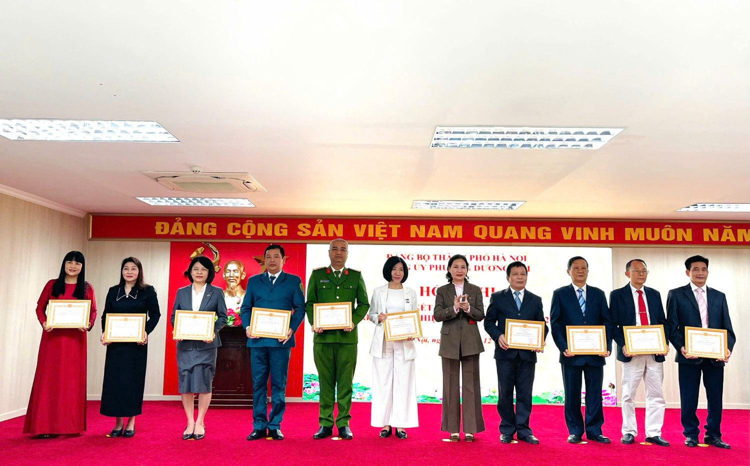 Nhân dịp này, Đảng ủy phường Dương Nội đã biểu dương khen thưởng 10 tổ chức đảng, 171 đảng viên hoàn thành xuất sắc nhiệm vụ; khen thưởng 10 tổ chức đảng có thành tích trên các mặt công tác xây dựng Đảng năm 2025.  Trong đó, Đảng bộ Trường Tiểu học Lê Quý Đôn được công nhận Hoàn thành xuất sắc nhiệm vụ.