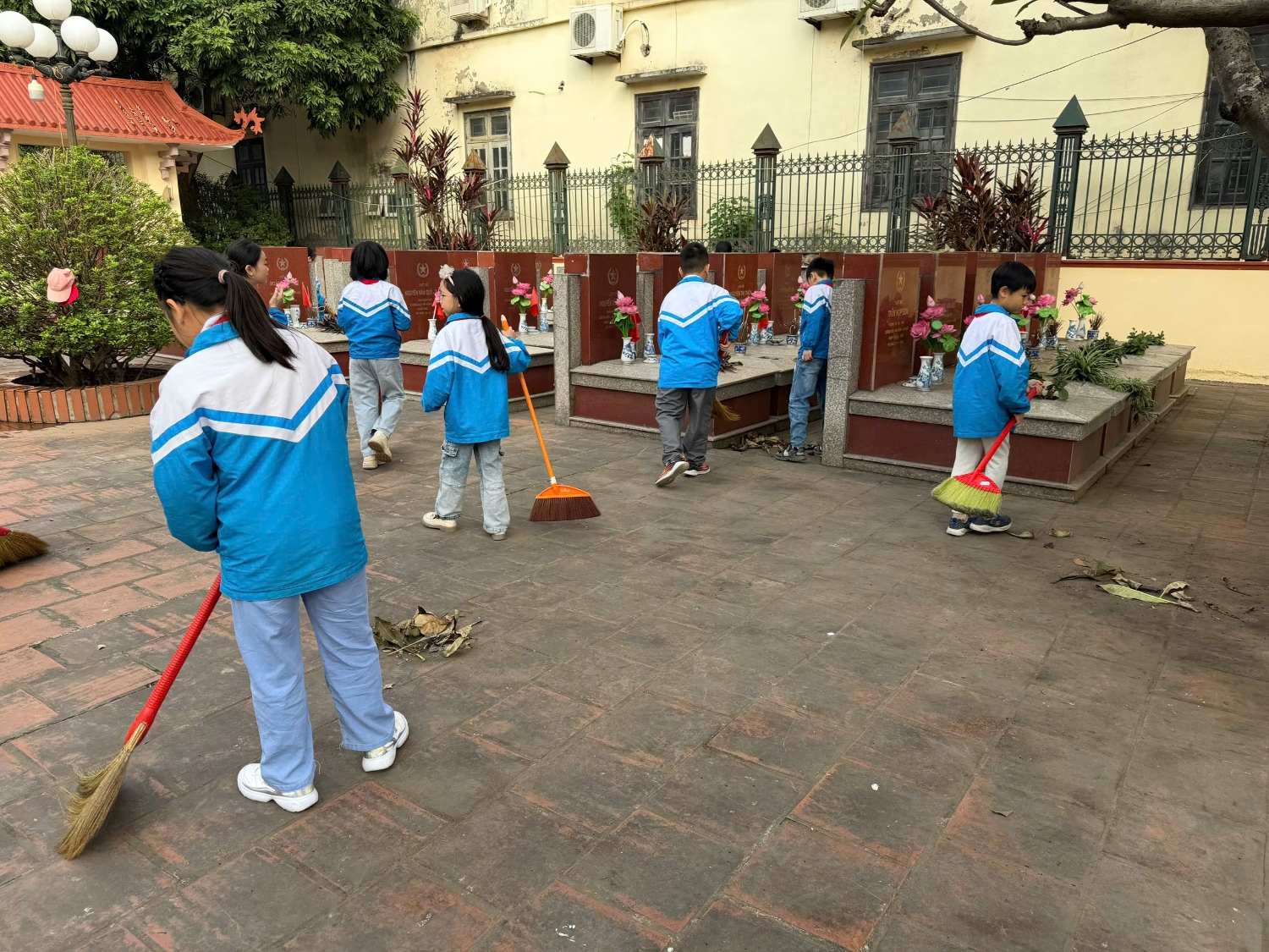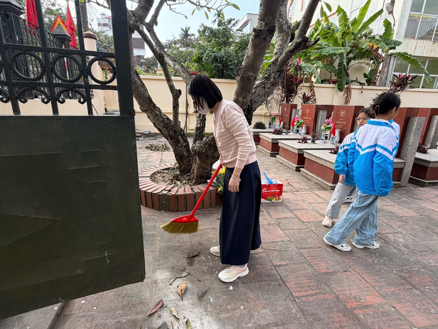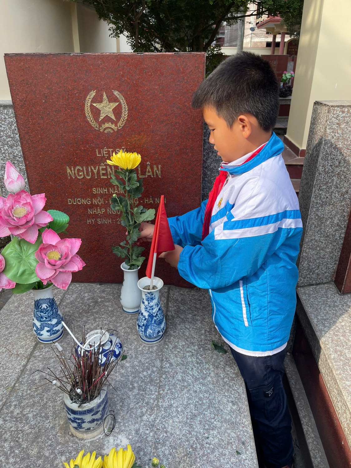 Học sinh thăm và viếng Nghĩa trang Liệt sĩ phường Dương Nội nhân dịp kỷ niệm 81 năm ngày Thành lập Quân đội nhân dân Việt Nam
