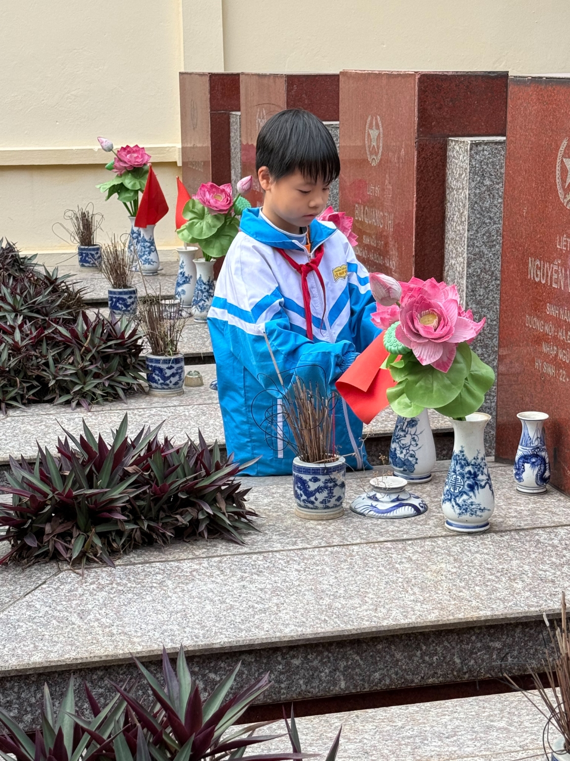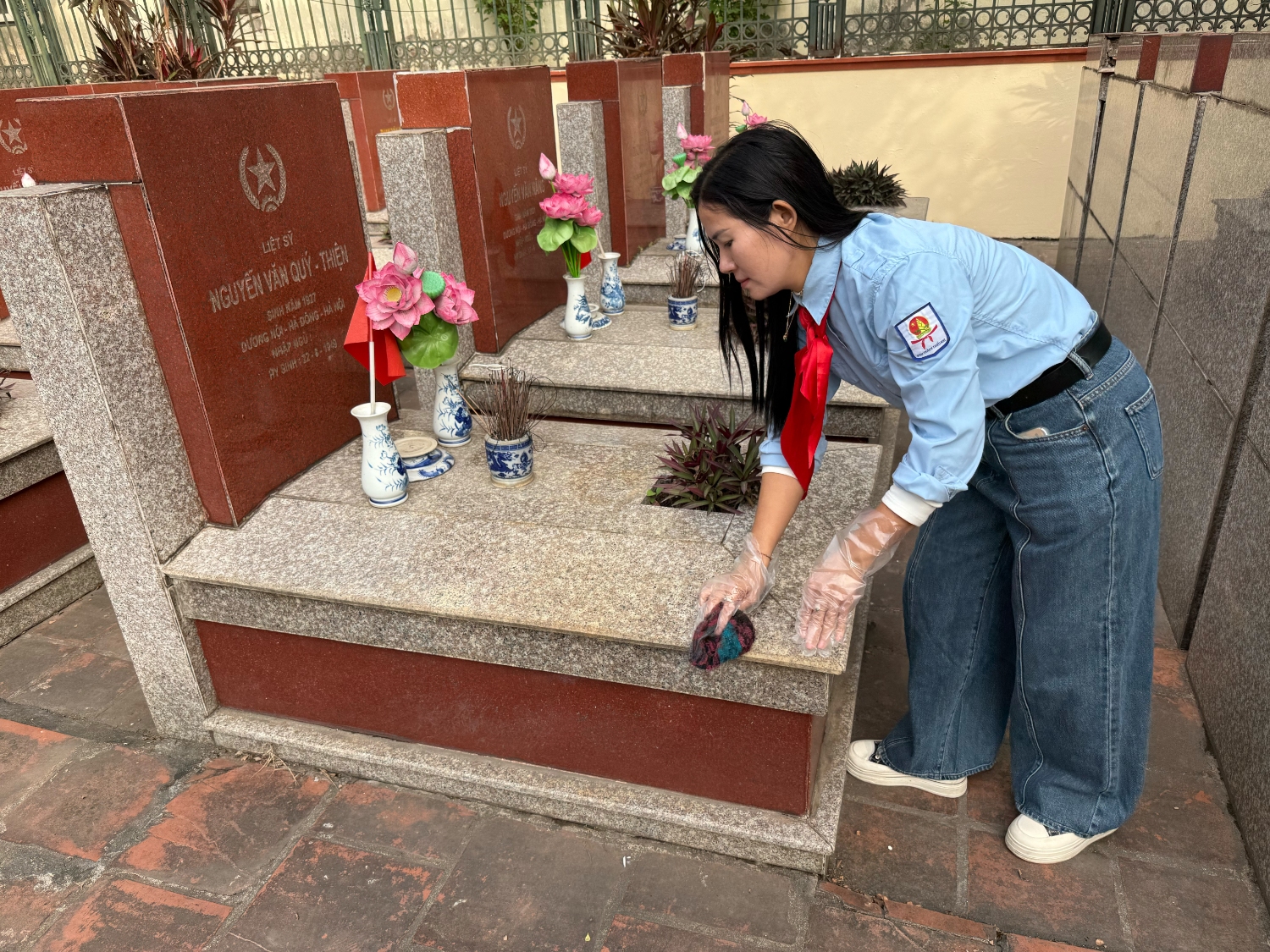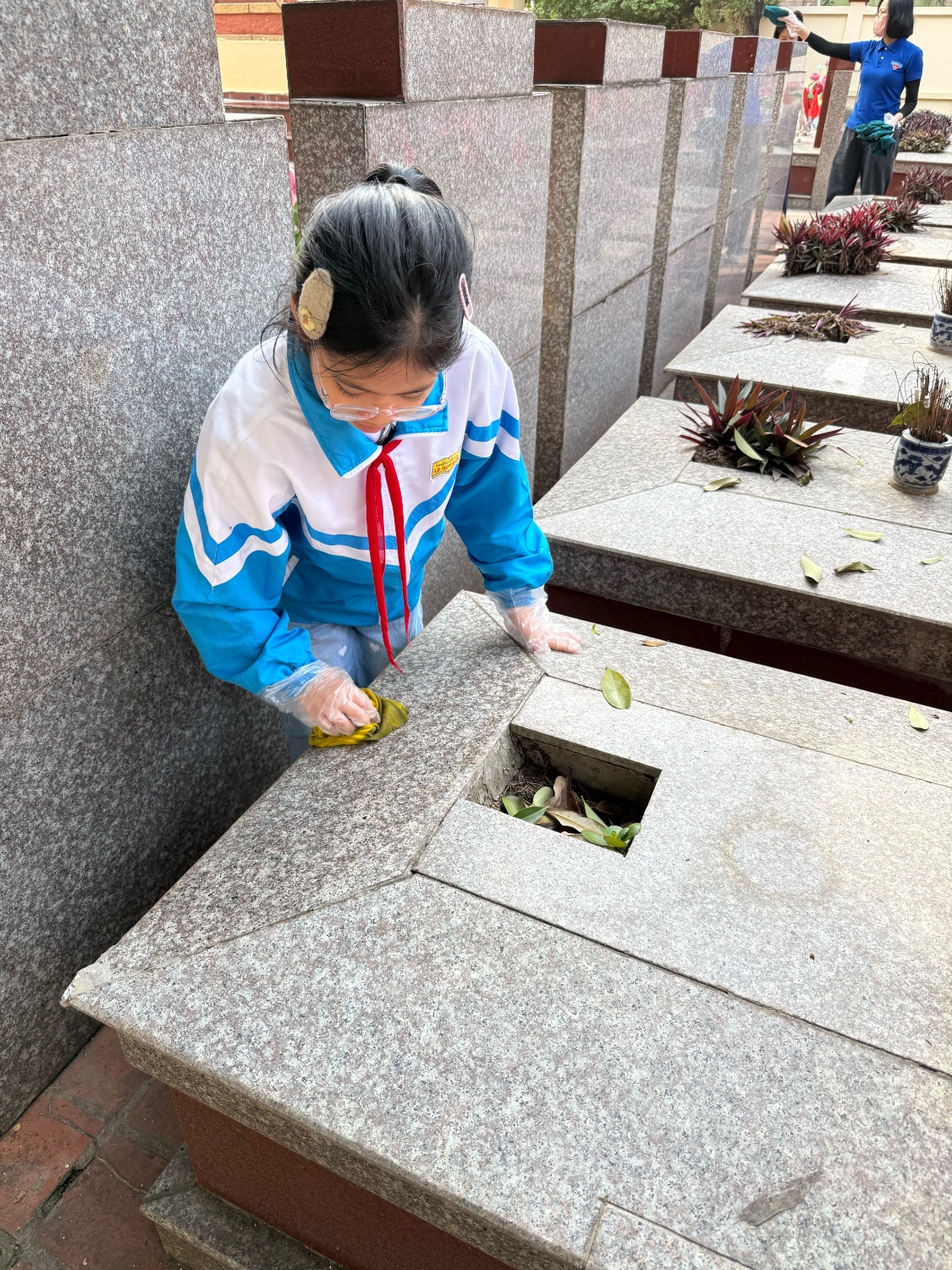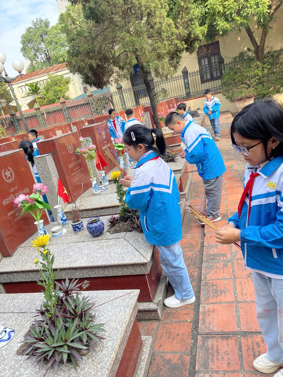 Học sinh thăm và viếng Nghĩa trang Liệt sĩ phường Dương Nội nhân dịp kỷ niệm 81 năm ngày Thành lập Quân đội nhân dân Việt Nam